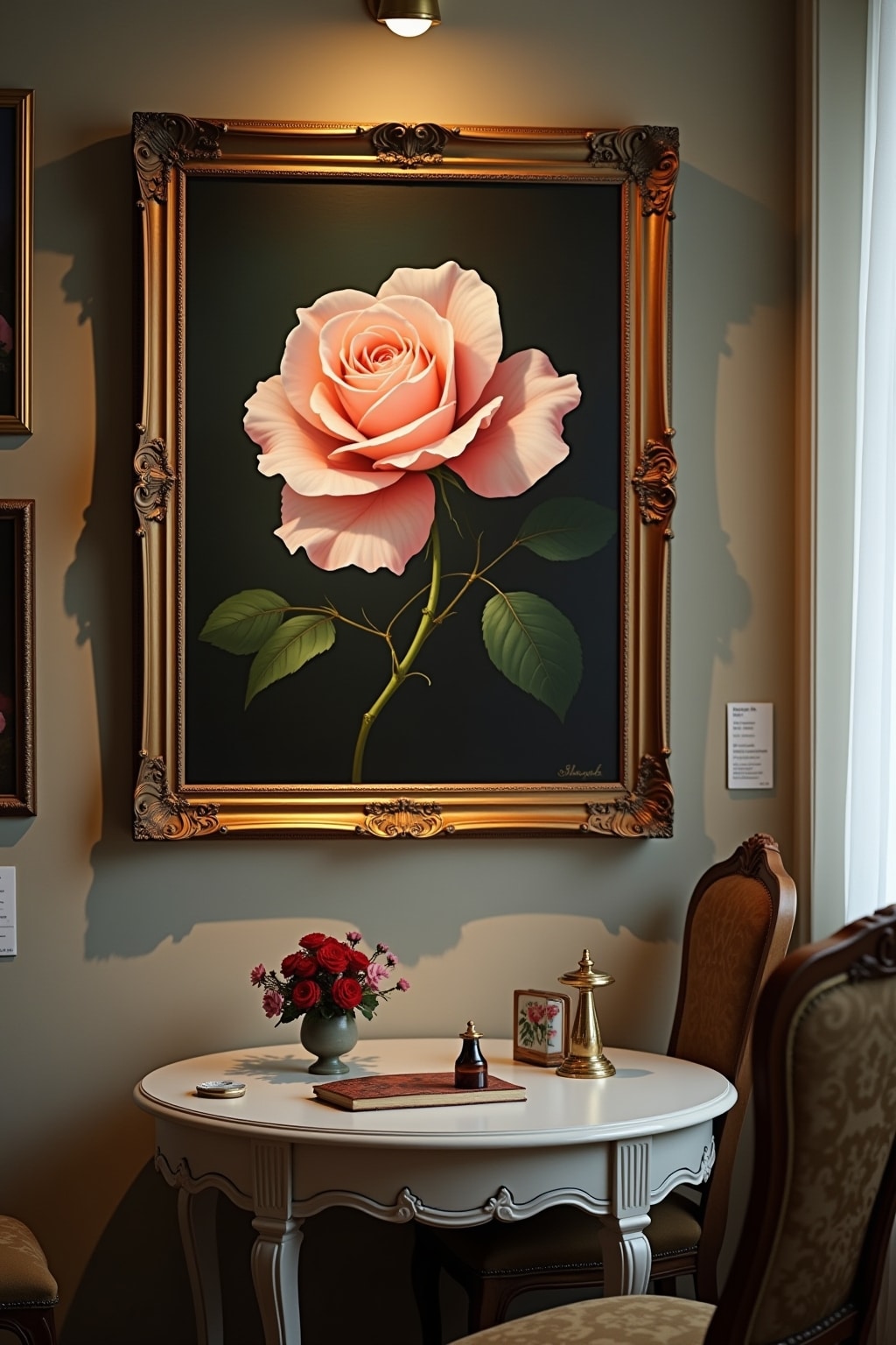 In der Bildenden Kunst transportieren Rosen vielfältige symbolische Bedeutungen. Seit Jahrhunderten steht die Blüte für Liebe und Leidenschaft, insbesondere in roten Tönen gemalt. Weiße Rosengemälde symbolisieren hingegen Reinheit, Unschuld und spirituelle Vollkommenheit, weshalb sie oft in religiösen Darstellungen zu finden sind. Rosa Rosenblüten verkörpern Anmut und Dankbarkeit. In Vanitas-Stillleben des Barocks erscheinen verwelkende Blumen als Memento mori – als Erinnerung an die Vergänglichkeit. In der Mariendarstellung wird die Madonna häufig als „Rosa mystica“ (mystische Rose) bezeichnet. Auch in der modernen Kunst behalten Rosendarstellungen ihre tiefe Aussagekraft und werden als zeitlose Motive für Schönheit, Fragilität und den Lebenszyklus eingesetzt.