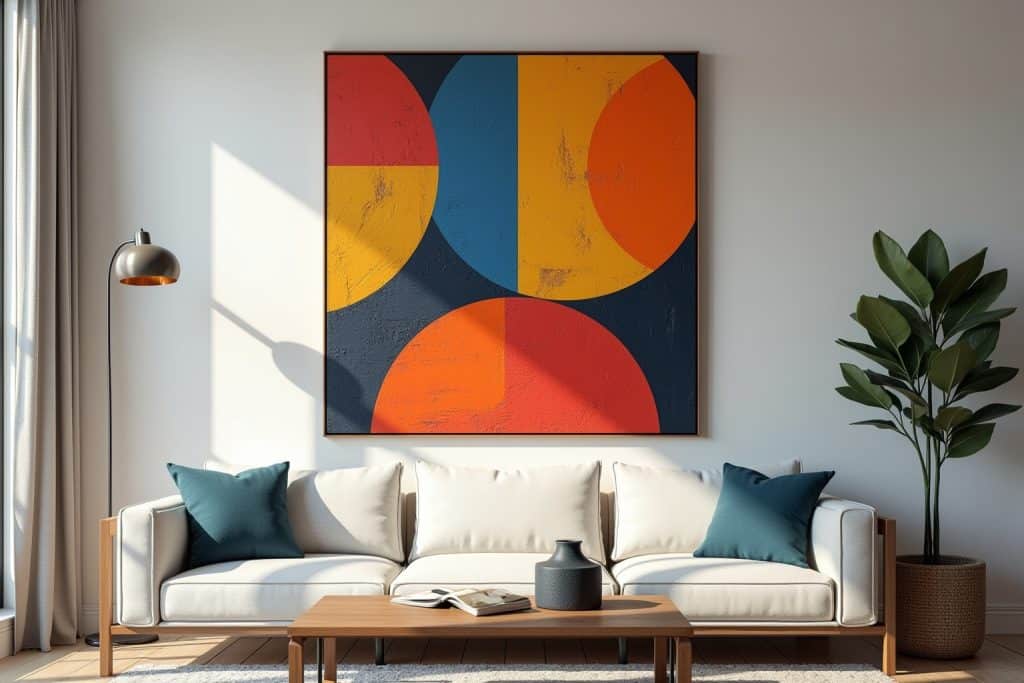 Du kannst bunte abstrakte Leinwände entweder harmonisch in deine bestehende Farbpalette integrieren, indem du Farben aus dem Bild aufgreifst, oder sie als bewussten Kontrastpunkt setzen. Überlege, welche Wirkung du erzielen möchtest: Soll das Bild das Interieur ergänzen oder einen Blickfang schaffen? Auch die Stilrichtung der Leinwand sollte zum Gesamtstil deines Raumes passen, sei er modern, klassisch oder eklektisch.