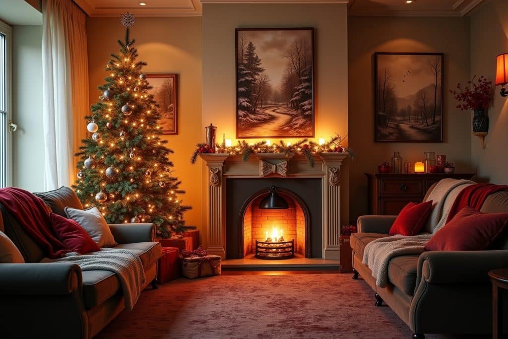 - Rustikal/Landhaus: Hier passen Motive, die Gemütlichkeit ausstrahlen. Denke an Bilder von Holztexturen, traditionellen Weihnachtsschmuck oder stimmungsvolle Aufnahmen von alten Weihnachtsbäumen.