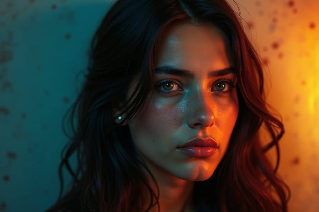 Die Beleuchtung spielt eine entscheidende Rolle bei einem Porträt. Sie beeinflusst die Formen, die Farben und die Stimmung des Bildes. Experimentiere mit verschiedenen Lichtquellen und Schattierungen, um die gewünschte Wirkung zu erzielen. Ein helles, direktes Licht kann das Gesicht klar und deutlich darstellen, während ein weiches, diffuses Licht eine sanftere und schmeichelhaftere Wirkung erzeugt. Achte darauf, dass die Schatten die Formen des Gesichts definieren und ihm Tiefe verleihen.