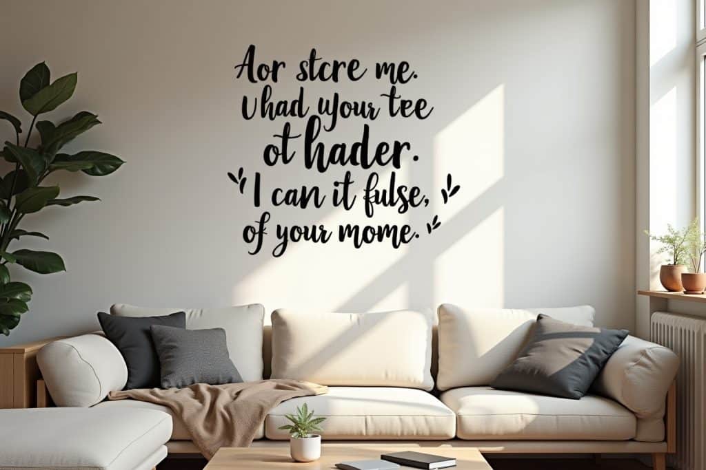 - Die Größe und Proportionen des Wandtattoos: Der Spruch sollte in einem angemessenen Verhältnis zur Wandfläche stehen. Ein zu kleiner Spruch geht unter, ein zu großer kann einen Raum erschlagen. Viele Anbieter bieten die Möglichkeit, die Größe individuell anzupassen.